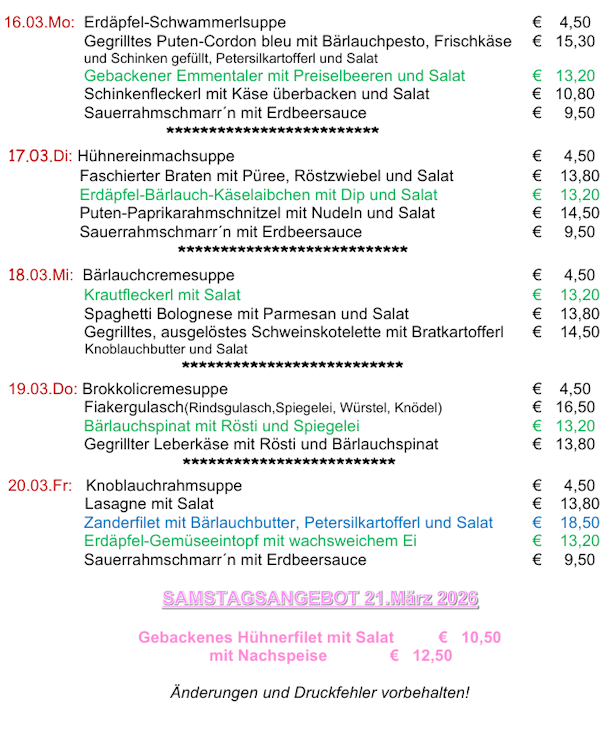 Menüplan vom 16.3. bis 20.3.2026